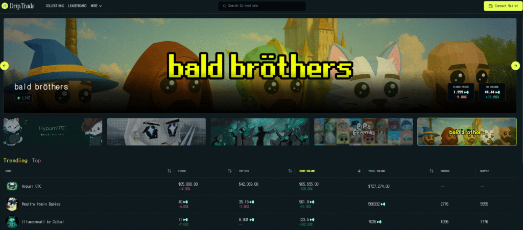 오늘은 가장 핫 한 네트워크인 하이퍼리쿼드의 NFT 마켓 Drip.Trade에 대해 알아보려고 합니다 !