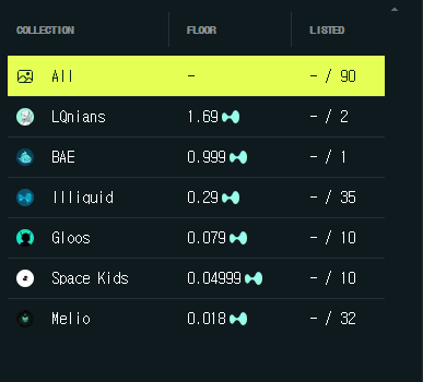 제일 비싼 nft 해봐야 현재 가격으로 LQnians 1.69 (바닥가격) 2개 입니다 ㅎㅎ