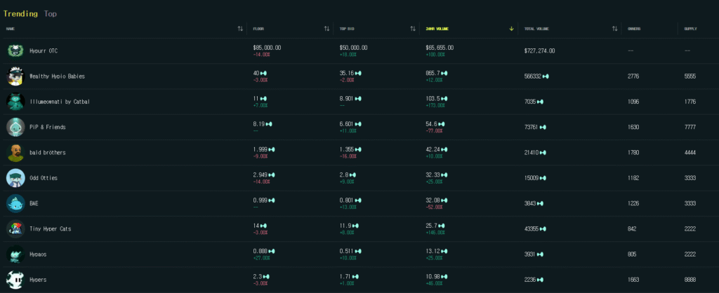 이더리움의 nft 시장에 비해 아직 하이퍼리쿼드 nft 생태계 가격은 많이 합리적입니다.