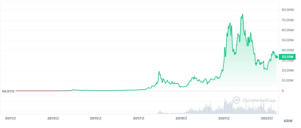 (코인 마캣캡 : https://coinmarketcap.com/currencies/bitcoin 에서 확인)